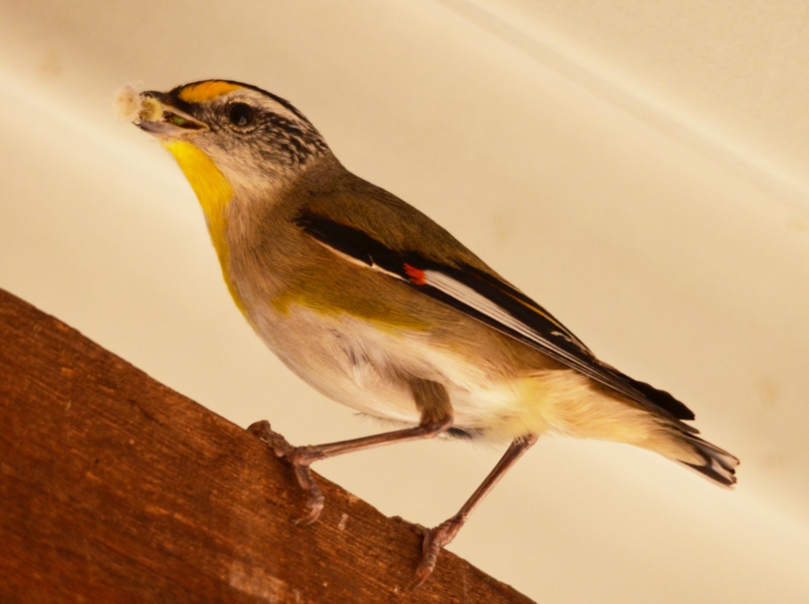 Parent clearing young's droppings from the nest box